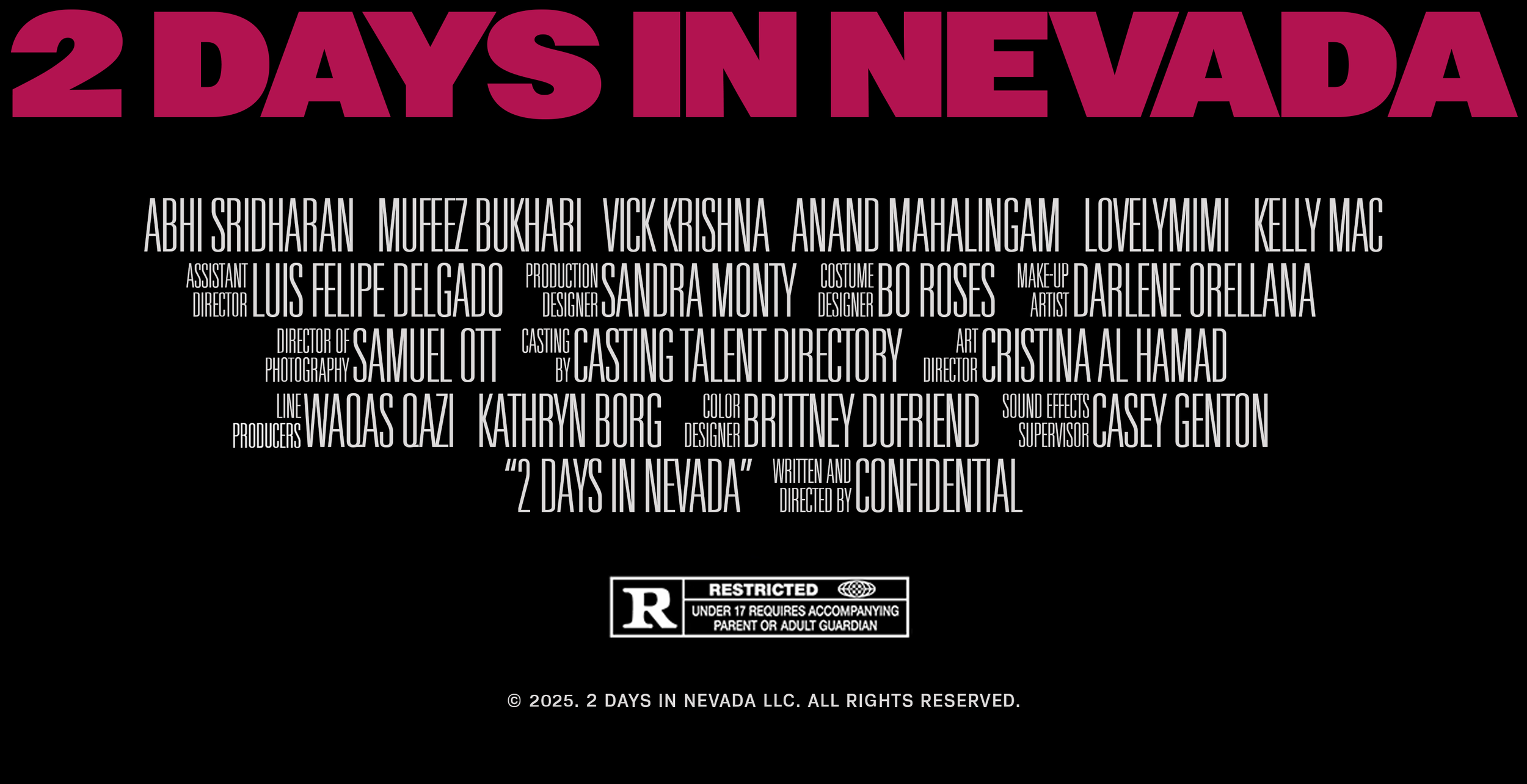 Name * First Name Last Name Email * Zip Code * Thanks! We’ll email you the sneak peek tour schedule when it’s announced! info@2daysinnevada.movie